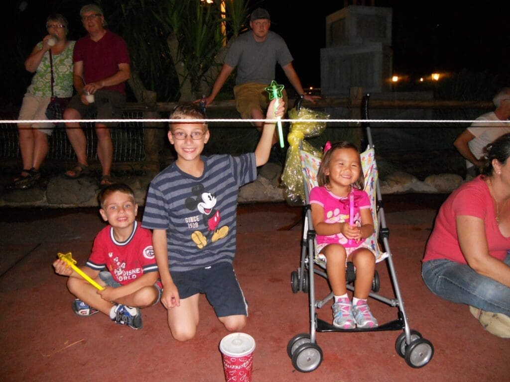 Another benefit to the stroller is that you are containing the child. They have a built in seat for parades and shows. They are easy to keep track of so you don’t end up losing anyone. (With 3 kids we are on zone defense, so keeping on kid in the stroller helped us keep track of everyone.) And, you don’t have to do the thing where you’re holding their hand and draaaggggiinnnggg them along as you walk.